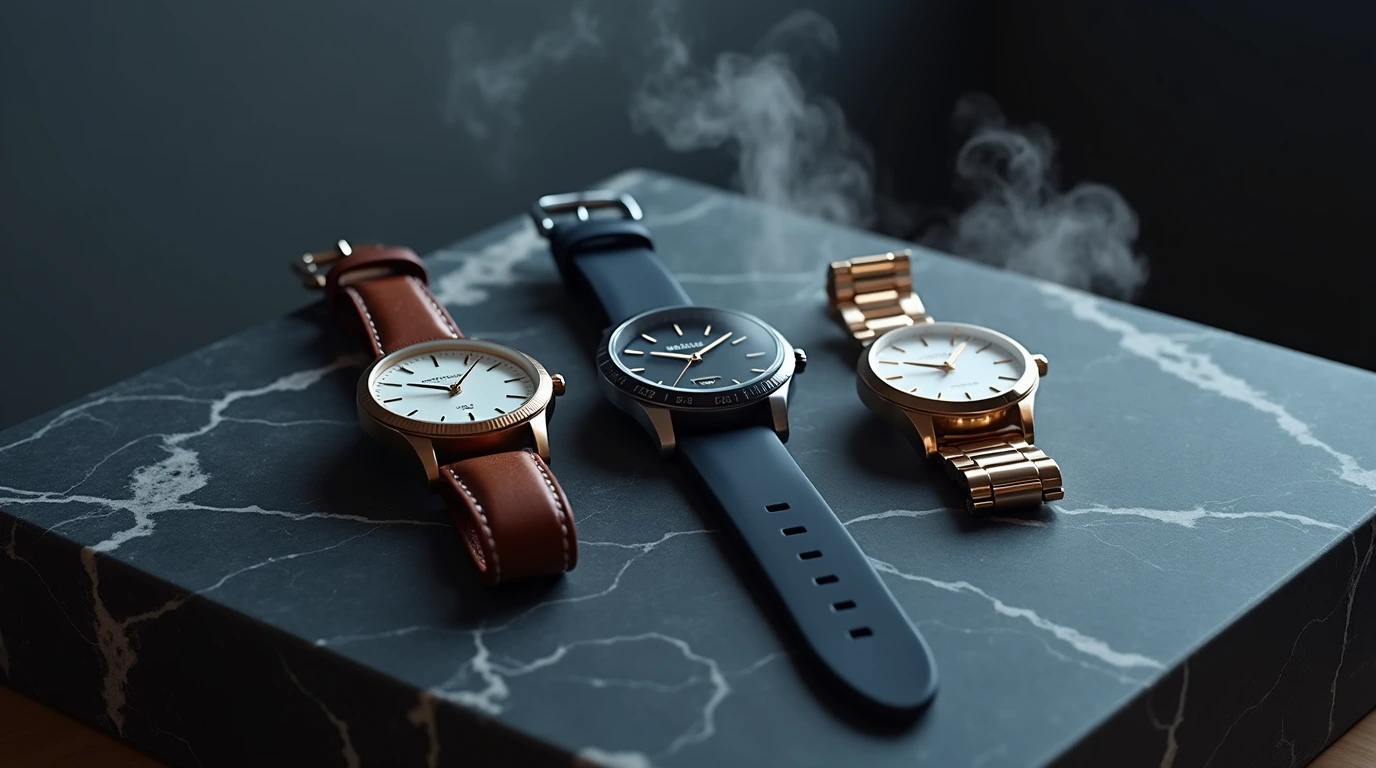 - مواد ساخت ساعت (استیل، تیتانیوم، چرم، سرامیک): مواد ساخت ساعت از استیل، تیتانیوم، چرم، و سرامیک میتواند تأثیر زیادی بر ظاهر و دوام ساعت داشته باشد. استیل مقاوم و شیک است، تیتانیوم سبک و محکم، چرم ظاهری کلاسیک دارد، و سرامیک مقاوم در برابر خراش است.