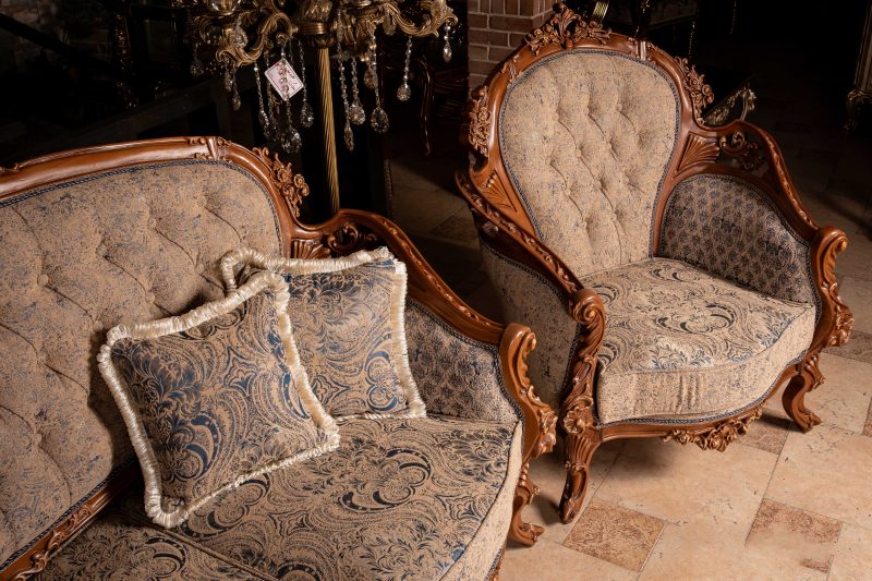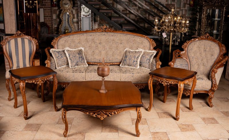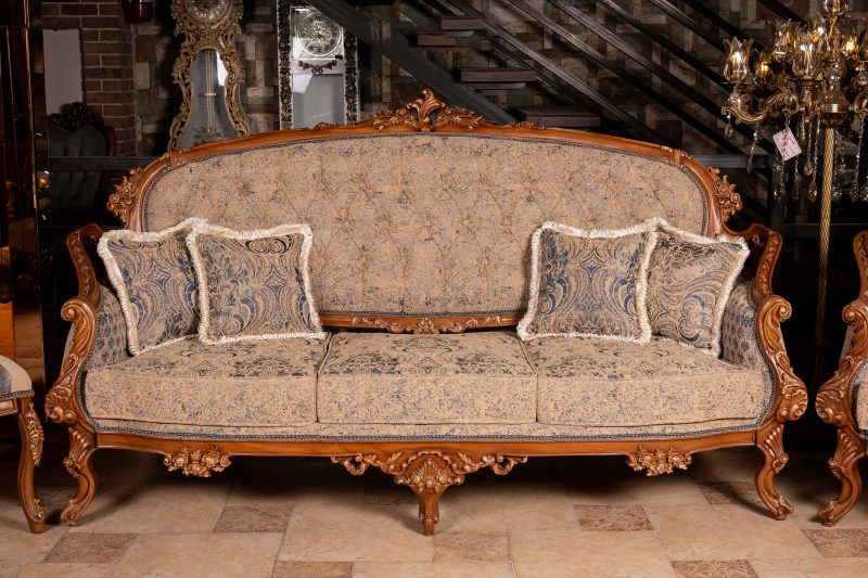 در مبل آرین، از پارچه ترک مرغوب استفاده شده است که علاوه بر زیبایی، کیفیت بالایی را نیز ارائه میدهد. کاناپهها با طرح پتینه و ترکیب رنگهای کرم و سورمهای طراحی شدهاند که با هر نوع دکوراسیونی سازگار است و فضایی لوکس و دلپذیر ایجاد میکند. صندلیهای میزبان نیز با پارچه راهراه، جلوهای شیک و متفاوت به این ست بخشیدهاند و ترکیب کاملی از هنر و اصالت را به نمایش میگذارند.