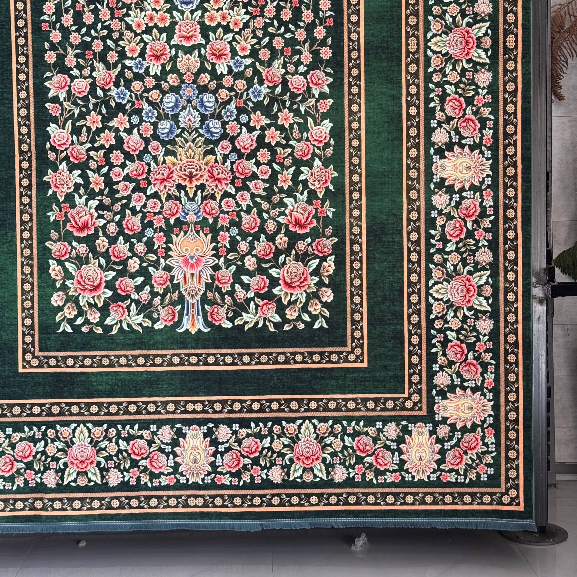 کاربردهای فرش ابریشم نما ماشینی ۷۷ رج کد باغ گل سبز