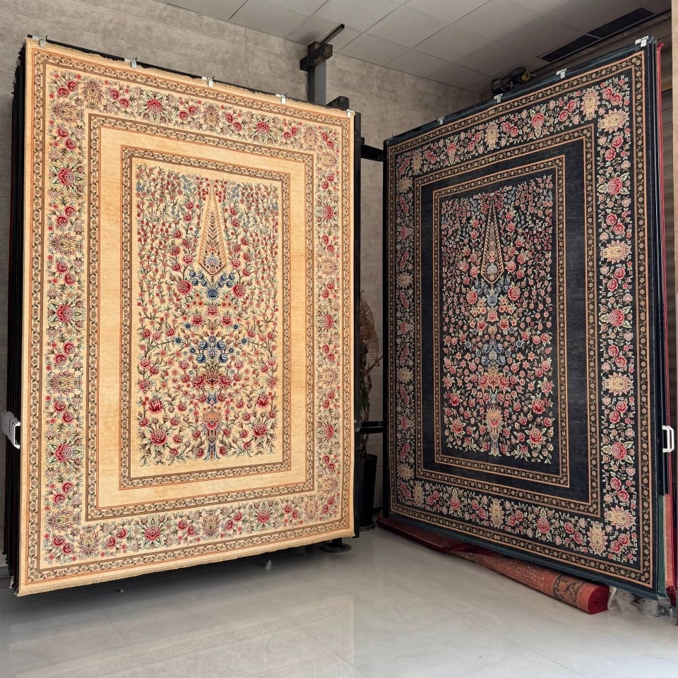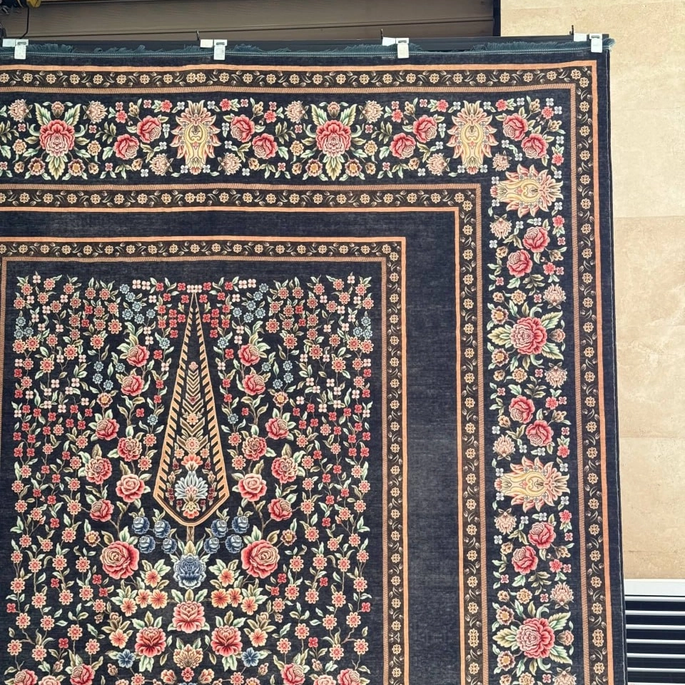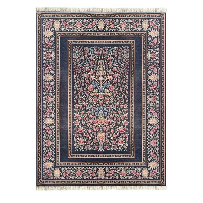کاربردهای فرش ابریشم نما ماشینی ۷۷ رج کد باغ گل زغالی