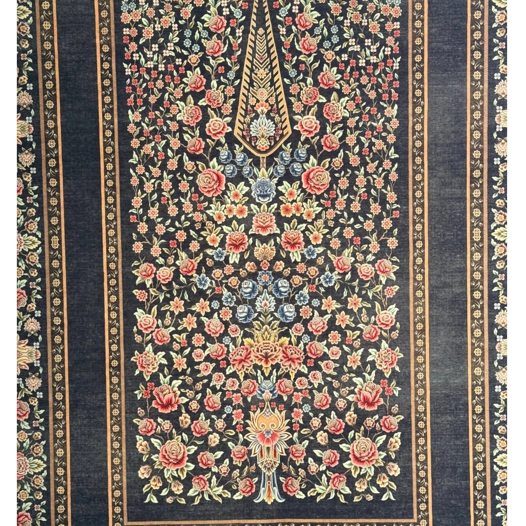 خرید فرش ابریشم نما ماشینی ۷۷ رج کد باغ گل زغالی از الوقسطی
