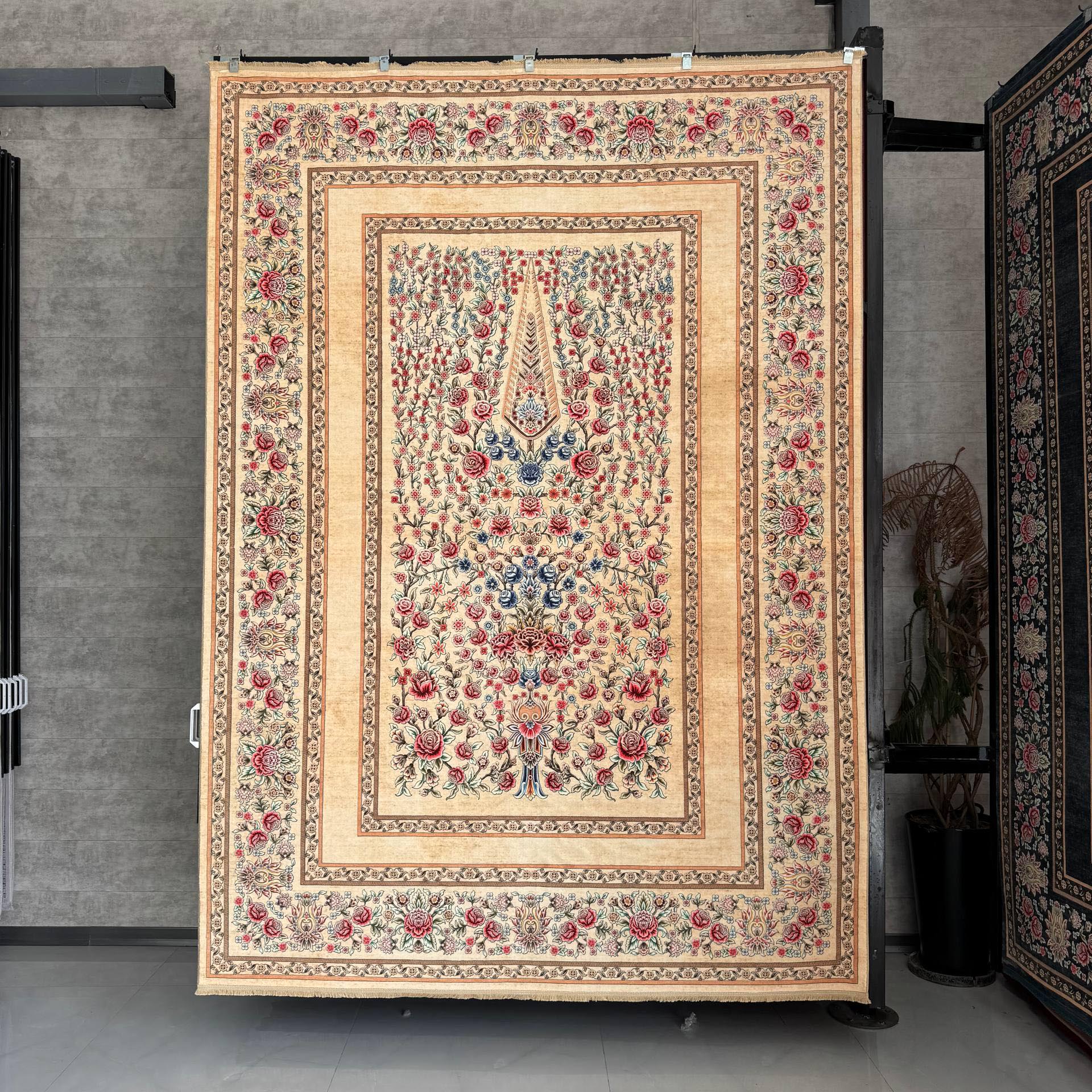 کاربردهای فرش ابریشم ماشینی ۷۷ رج کد باغ گل کرم