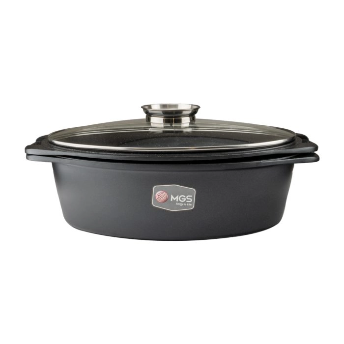 علاوه بر این، طراحی دو دسته فلزی و ضخیم، باعث میشود هنگام جابهجایی از اجاق به فر یا سفره، ایمنی بیشتری داشته باشید. ترکیب روکش گرانیت و درب پیرکس، این محصول را از نظر ظاهری نیز شبیه ظروف آشپزی لوکس اروپایی کرده است. برند MGS با الهام از طراحی ایتالیایی، این مدل را برای کارایی بالا و زیبایی بصری توأمان طراحی کرده است.