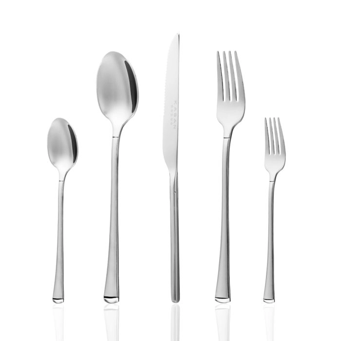 این ترکیب نشان میدهد که کابان در طراحی، تمام نیازهای کاربردی میز غذا را در نظر گرفته است. از وسایل اصلی مثل قاشق و چنگال تا ابزار خاص مانند کفگیر کیک و ملاقه سس، همه چیز در یک مجموعه جمع شده است. بدنه استیل ضد زنگ این سرویس، علاوه بر درخشش چشمنواز، مقاومت بالایی در برابر خراش و سایش دارد. همچنین قابلیت شستوشو با دست و ماشین ظرفشویی باعث میشود نظافت آن بدون دردسر انجام شود. اگر همیشه نگران از بین رفتن جلای استیل بعد از شستوشو هستید، در مورد این مدل خیالتان راحت خواهد بود.