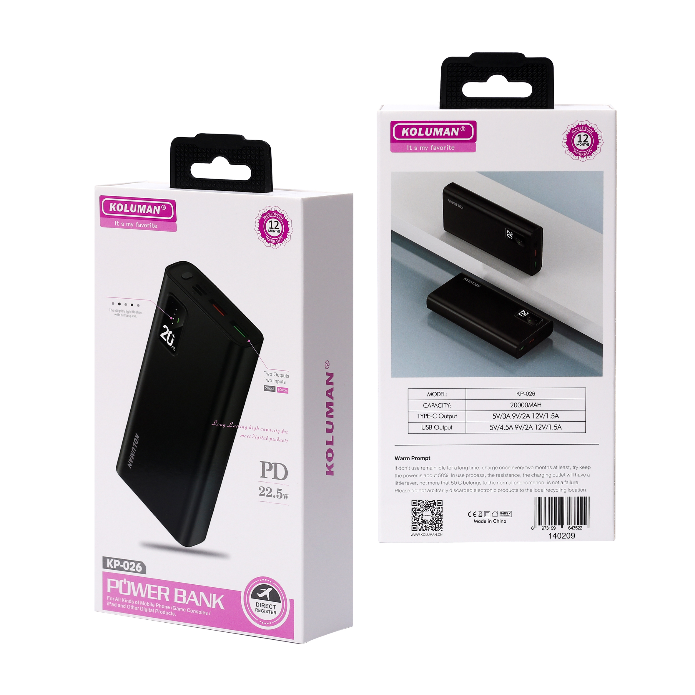 خرید پاوربانک کلومن مدل KP-026 ظرفیت ۲۰۰۰۰ میلی آمپر ساعت