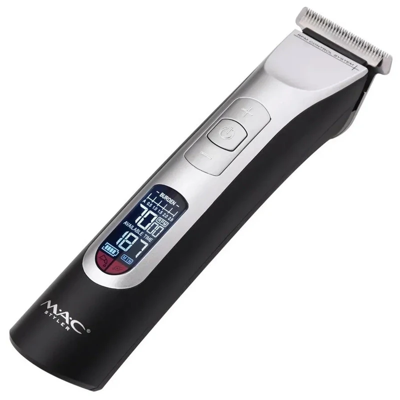 نمایشگر LCD پیشرفته، اطلاعات حیاتی مانند میزان شارژ، تنظیمات تیغه، نیاز به روغن و سرعت اصلاح را به کاربر نمایش میدهد. این صفحه نمایش، کنترل و مدیریت دستگاه را آسان کرده و برای استفاده حرفهای در سالنهای زیبایی بسیار مناسب است.