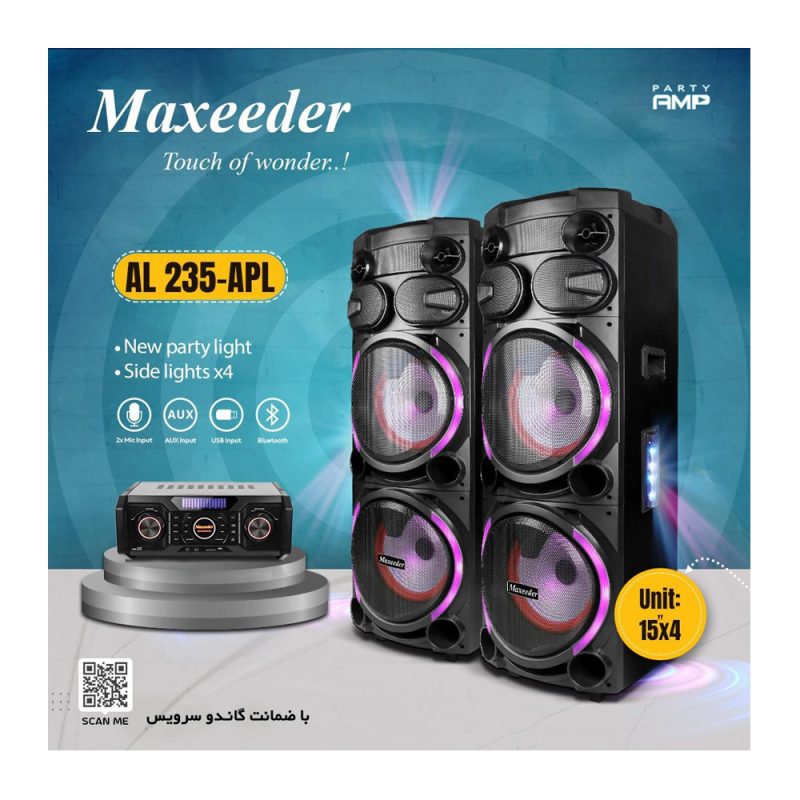اسپیکر مکسیدر مدل AL-235 APL از جدیدترین محصولات تولیدی برند مکسیدر (Maxeeder) است. برند مکسیدر همواره بر زیبایی و قدرت اسپیکرهای خود توجه داشته و توانسته محصولی با کیفیت و با تکنولوژیهای روز دنیا به بازار عرضه کند. قدرت فوقالعاده این اسپیکر باعث شده تا بتوانید در مهمانیها و جشنهای خود، صدای بسیار با کیفیت داشته باشید.