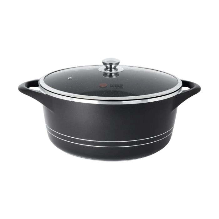 قابلمه دو دسته سایز ۳۶ گرانیت طرح ایتالیا B از برند MGS یک انتخاب عالی برای آشپزخانه شما است. این قابلمه با طراحی شیک و ویژگیهای کاربردی خود، به شما کمک میکند تا غذاهایی با کیفیت و طعمی لذیذ تهیه کنید. قابلمه گرانیتی با روکش نچسب و درب پیرکس مقاوم، پخت غذا را راحتتر کرده و از کیفیت پخت غذا اطمینان حاصل میکند.