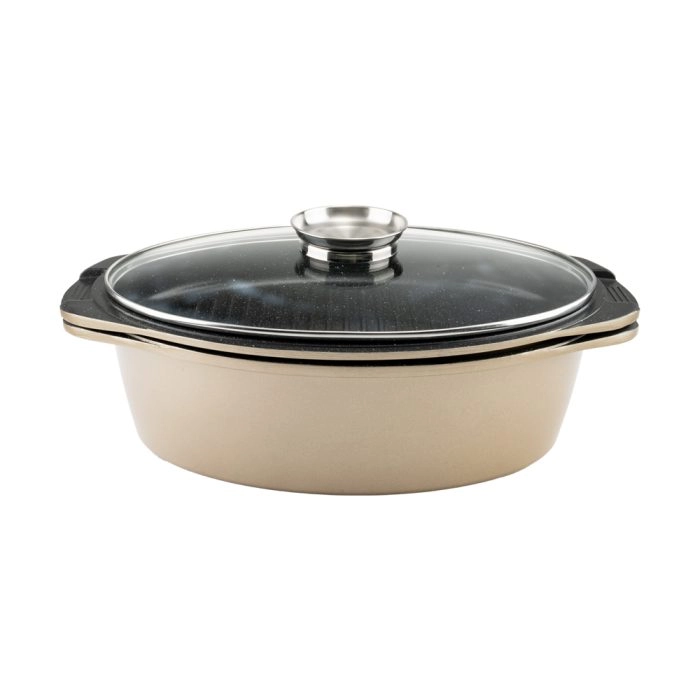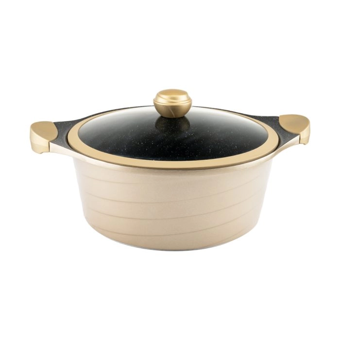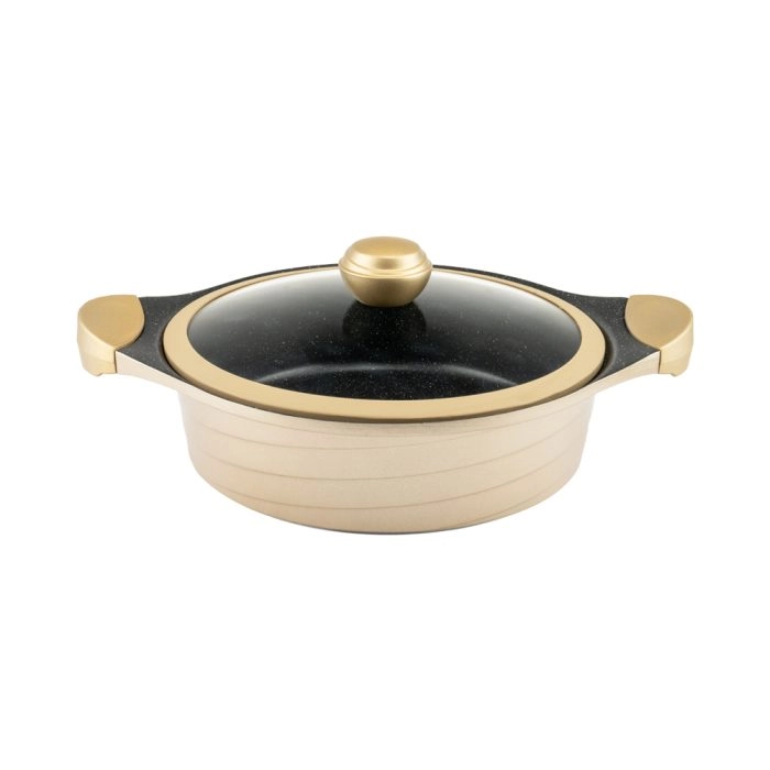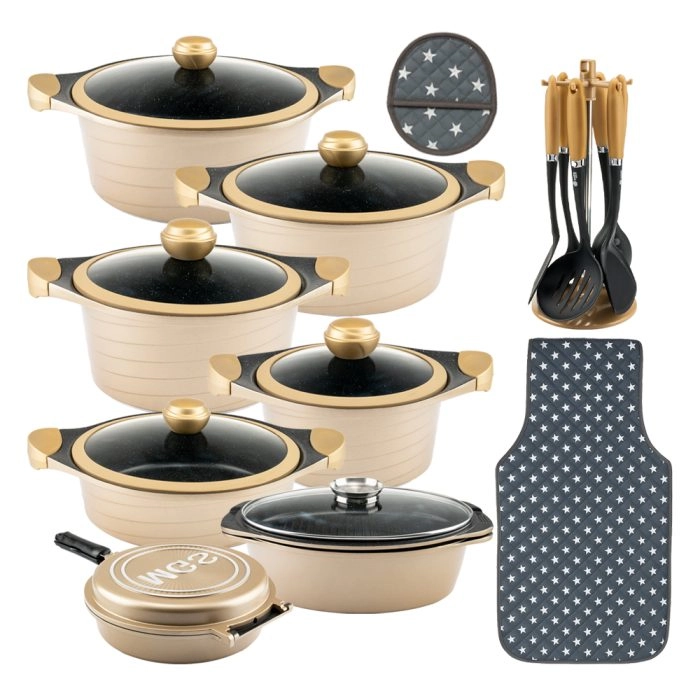 آنچه این سرویس را از سایر مدلها متمایز میکند، ترکیب دوام، زیبایی و کیفیت ساخت است. بدنه آلومینیومی آن علاوه بر وزن مناسب، مانع تغییر شکل در اثر گرما میشود و روکش گرانیتی مقاوم تا دمای ۲۶۰ درجه سانتیگراد، پختی سالم و بیدود را ممکن میسازد.