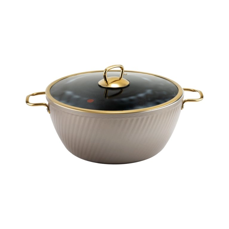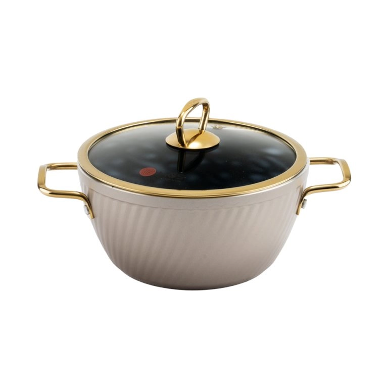 بدنه آلومینیومی با روکش گرانیت نچسب باعث میشود غذا به کف قابلمه نچسبد و شستوشوی آن بسیار آسان باشد. طراحی فورج این مدل، حرارت را بهطور یکنواخت پخش میکند و عمر مفید بالایی برای ظروف فراهم میسازد.