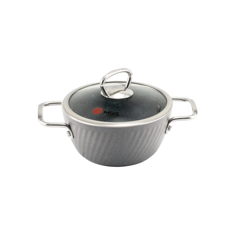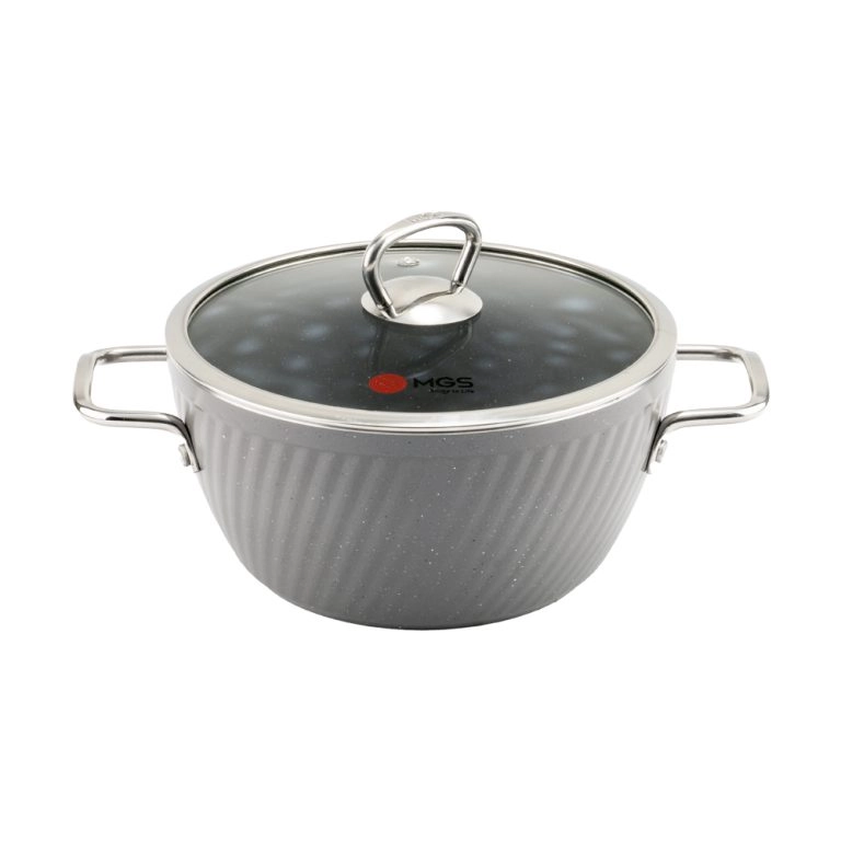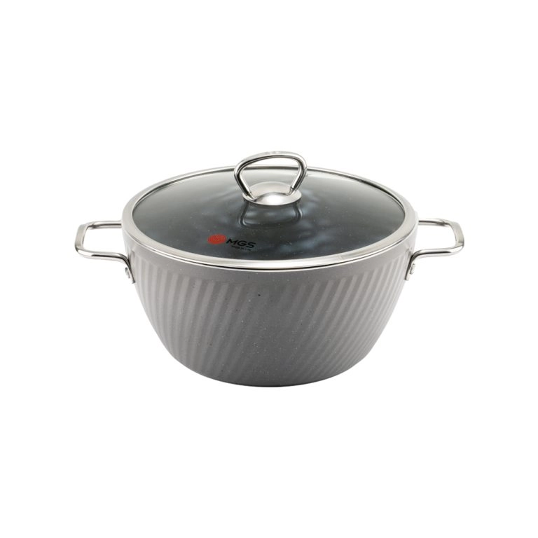 این سرویس از برند MGS با تمرکز بر دوام، طراحی ارگونومیک و زیبایی ساخته شده است. بدنه آلومینیومی با روکش گرانیت، مقاومت بالایی در برابر سایش و خط و خش ایجاد کرده و پخت یکنواخت غذا را تضمین میکند. دربهای پیرکس این سرویس، امکان مشاهده محتویات قابلمه بدون برداشتن درب را فراهم کرده و حرارت را به خوبی حفظ میکنند. ویژگیهای کلیدی این سرویس قابلمه عبارتاند از: