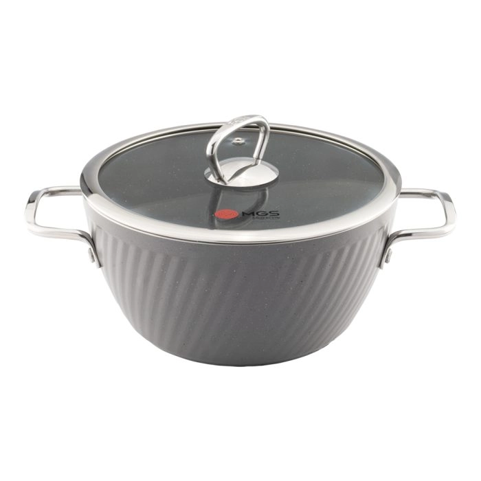 برای کسانی که به دنبال یک ست پخت و پز کامل، با کیفیت و بادوام هستند، سرویس قابلمه ۱۰ پارچه فورج کد FR04S از برند MGS گزینهای کارآمد است. این سرویس شامل سه قابلمه با سایزهای ۲۰، ۲۴ و ۲۸ سانتیمتر و دو تابه تک دسته با قطر ۲۴ و ۲۸ سانتیمتر است. بدنه آلومینیومی و روکش گرانیت نچسب، پخش حرارت یکنواخت و پخت بدون چسبندگی غذا را تضمین میکند. دربهای پیرکس این امکان را میدهند که روند پخت را بدون نیاز به باز کردن قابلمه مشاهده کنید. اگر قصد خرید سرویس قابلمه گرانیتی دارید، این مدل با طراحی فورج، دوام بالا و کیفیت عالی گزینهای مطمئن برای آشپزی روزمره و مهمانیهاست.
