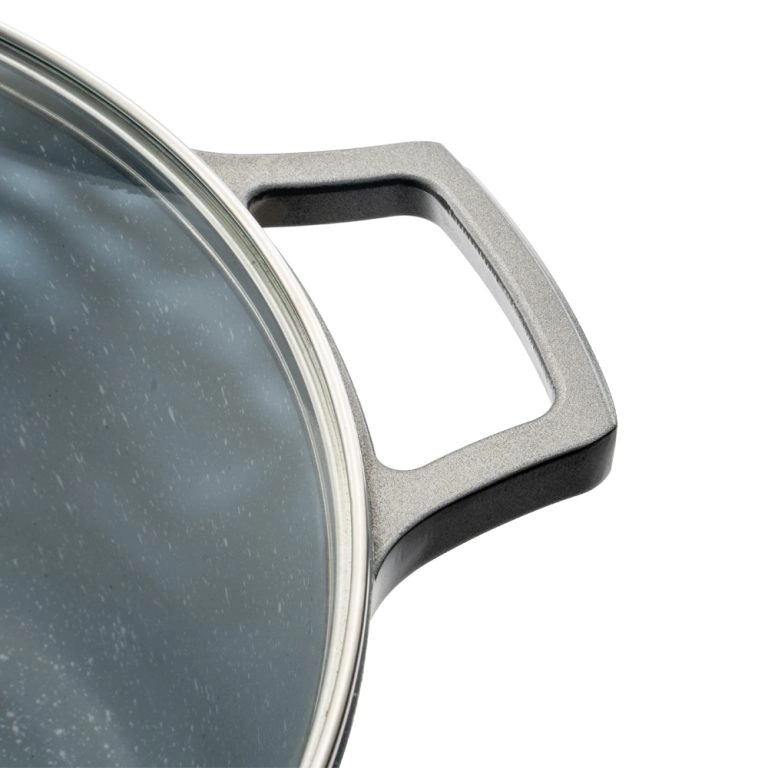 جنس روکش: گرانیت نچسب که به شما کمک میکند تا پختی سریع و بدون دردسر داشته باشید و شستوشوی آن نیز بسیار آسان باشد.