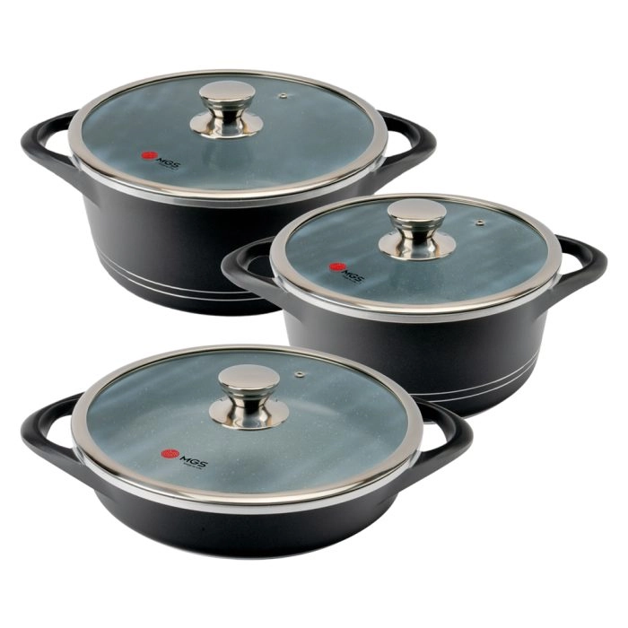 تمامی این ویژگیها نشان میدهد که این محصول تنها یک سرویس پختوپز ساده نیست، بلکه ابزاری مطمئن برای پخت غذاهای متنوع است. در کنار طراحی زیبا، ترکیب آلومینیوم و گرانیت باعث شده حرارت به شکل یکنواخت پخش شود و غذا بدون تهگرفتن بپزد.