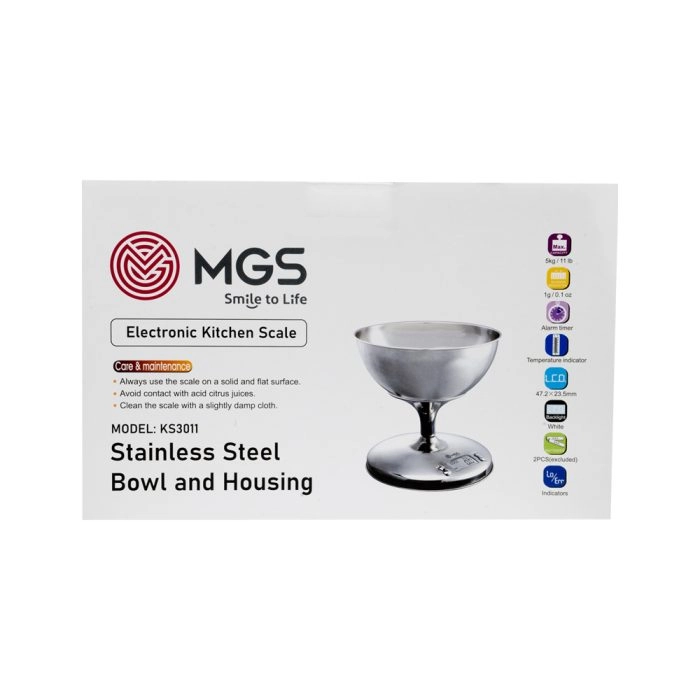 برای خرید ترازو دیجیتال آشپزخانه باکیفیت و اصل، انتخاب فروشگاهی معتبر اهمیت زیادی دارد. فروشگاه الوقسطی با عرضهی مستقیم محصولات برند MGS، خریدی مطمئن را برای شما فراهم کرده است. ترازو گیلاسی MGS کد KS3011 با بدنهی استیل ضد زنگ، طراحی جذاب و دقت بالا، گزینهای مناسب برای هر نوع آشپزخانه است.