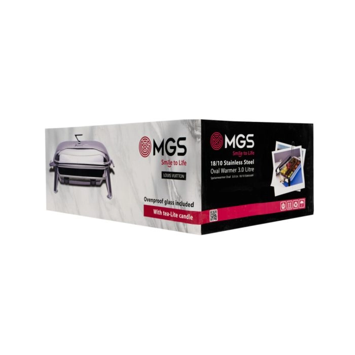 سوفله بزرگ مستطیل کروم MGS کد OW4101 با ترکیب کاسه پیرکس و پایه استیل کروم، ملاقه هماهنگ و طراحی شیک و مستطیلی، ابزاری کاربردی و زیبا برای سرو انواع غذاها است و جلوهای حرفهای و مرتب به میز پذیرایی شما میبخشد. فروشگاه الوقسطی مرجعی مطمئن برای خرید انواع ظروف سرو و پذیرایی با کیفیت و ضمانت اصالت است.