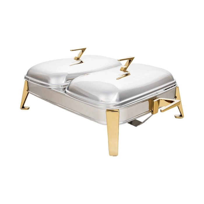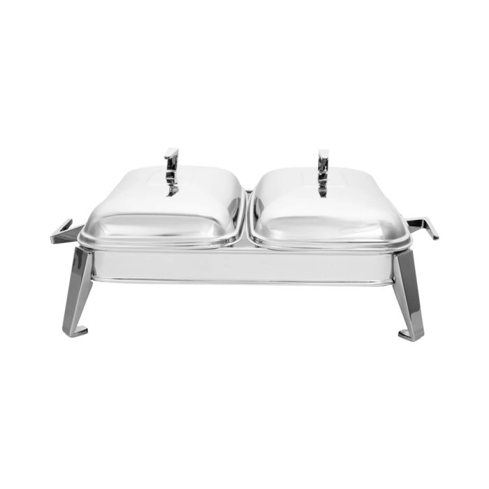این محصول از دو ظرف جداگانهی پیرکس مقاوم در برابر حرارت تشکیل شده که روی پایهای از استیل کروم قرار گرفتهاند. طراحی دوقلو به شما امکان سرو همزمان دو نوع غذا را میدهد، بدون آنکه طعم و حرارت آنها با هم مخلوط شود.
