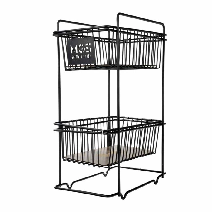 این سبد از دو طبقه فلزی تشکیل شده که امکان جداسازی و تفکیک مواد غذایی را فراهم میکند. جریان هوای آزاد میان بدنه مشبک فلزی به تازه ماندن محتویات داخل کمک میکند و از کپکزدگی یا خراب شدن آنها جلوگیری خواهد کرد.