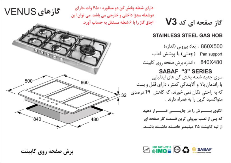 مهم است بدانید که اجاق گاز صفحهای اخوان مدل V3 ابعادی به طول ۸۶ سانتیمتر و عرض ۵۰ سانتیمتر دارد. الگوی برشی که برای این مدل در نظر گرفته شده، ابعاد ۴۸ سانتیمتر در ۴۸ سانتیمتر را داراست.
