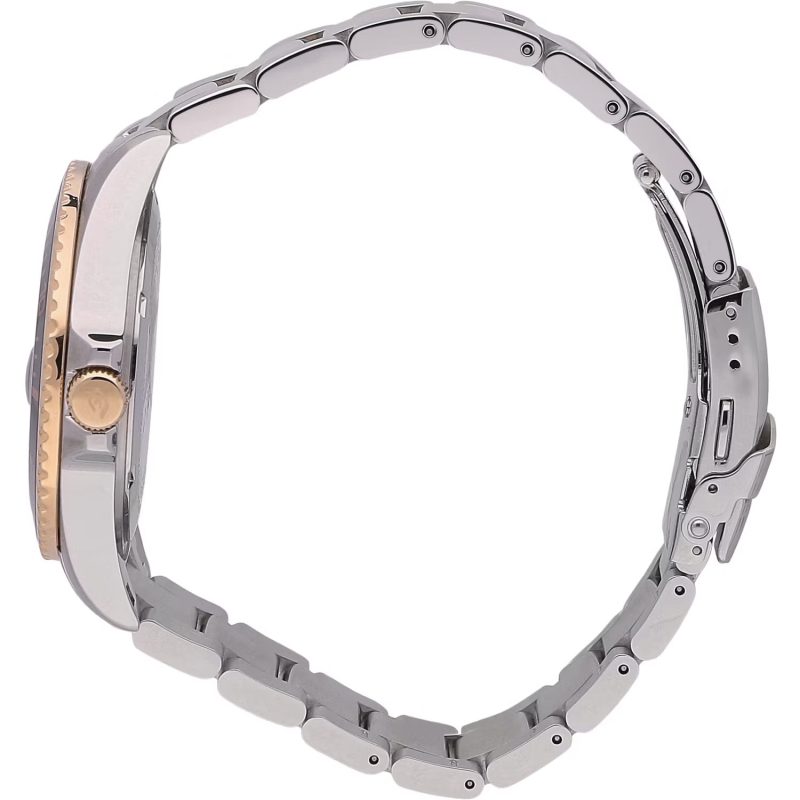 این ساعت با طراحی کلاسیک و در عین حال مدرن، گزینهای مناسب برای استفاده روزمره و مجالس رسمی است. صفحه گرد این ساعت با عقربههای ساده و نشانگرهای واضح، خوانایی بالایی را فراهم میکند. همچنین، ترکیب رنگهای نقرهای، طلایی و مشکی، به این ساعت ظاهری شیک و لوکس میبخشد.