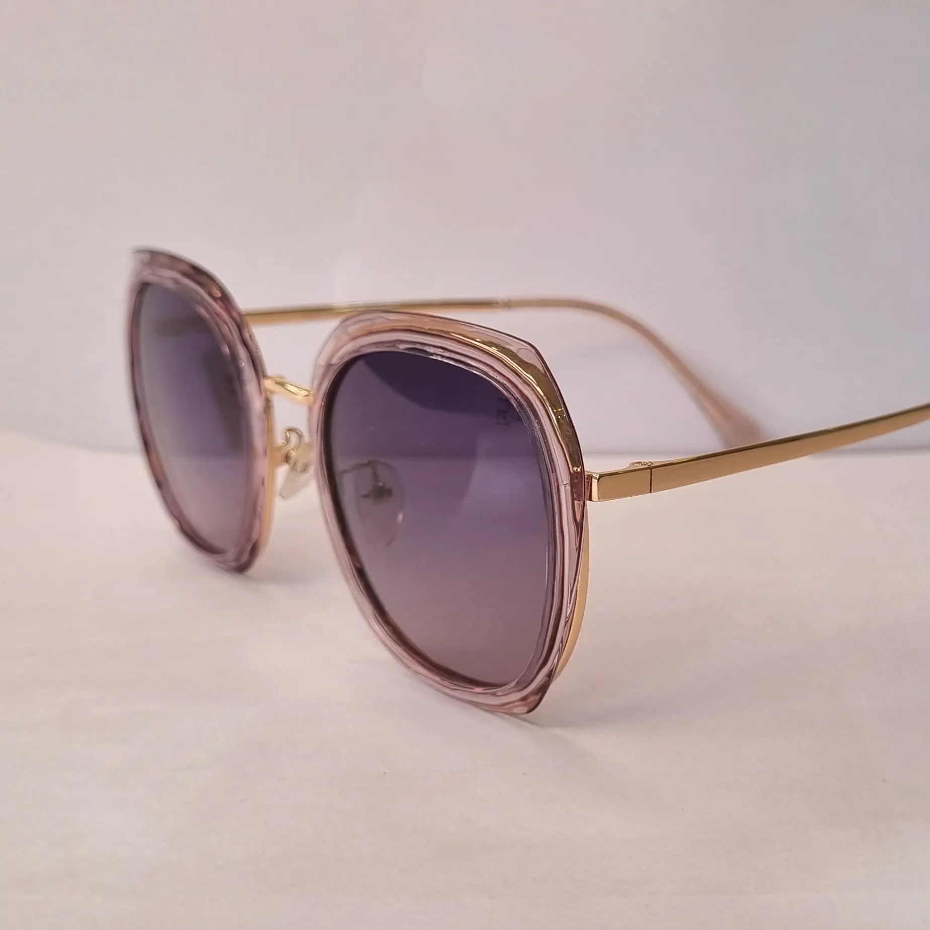 عدسیهای این مدل از جنس نایلون هستند؛ مادهای که به دلیل سبکی و مقاومت بالا، انتخابی ایدهآل برای ساخت عدسی به شمار میرود. رنگ بنفش هایلایت عدسیها علاوه بر ظاهر خاص، به کاهش شدت نور کمک میکند و دیدی راحتتر را در فضای باز به همراه دارد. عرض ۵۳ میلیمتری عدسیها و پل ۲۰ میلیمتری نیز طراحی متناسبی را ایجاد کرده که به خوبی با بیشتر فرمهای صورت سازگار است.