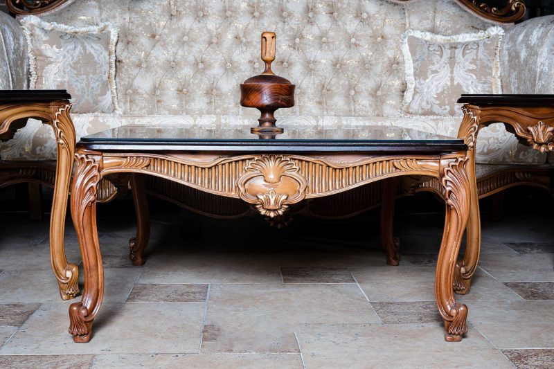 میز جلو مبلی شیشهای یا چوبی منبتکاریشده انتخاب مناسبی است.