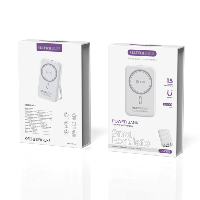 اگر به دنبال یک پاوربانک با قابلیتهای متنوع و کارآمد هستید، مدل پاوربانک اولتراسور میتواند گزینهای عالی برای شما باشد. برای کسانی که قصد خرید پاوربانک با ویژگیهای پیشرفته دارند، این دستگاه با وزن ۲۱۰ گرم و طراحی شیک در رنگهای سفید و مشکی، برای حمل و نقل آسان مناسب است. علاوه بر این، ویژگیهای خاص آن همچون شارژ بیسیم و فناوری شارژ سریع با تکنولوژی Quick Charge ۳.۰، سرعت شارژ دستگاههای مختلف را به طرز قابل توجهی افزایش میدهد.