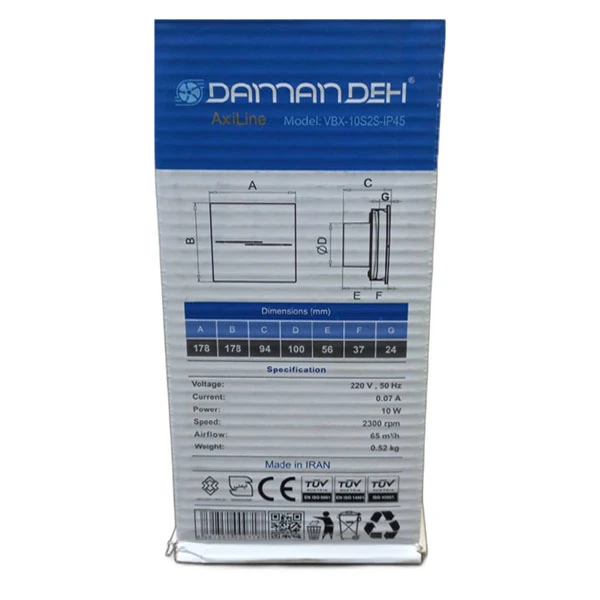 مشخصات فنی و ویژگیهای هواکش خانگی آکسی لاین VBX-10S2S-IP45